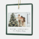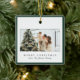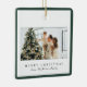 Minimal Green Border Photo Elegant Christmas Ceramic Ornament