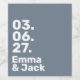 A minimalist wedding label design featuring a cool grey block with bold white typography. The clean layout highlights your wedding date and couple names in a modern, understated style. Ideal for contemporary celebrations, chic receptions, and stylish table settings. Simple, elegant, and timeless.