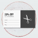 Minimal dark grey/white appointment card coupon for hair stylist. Design with faux silver scissor pattern.