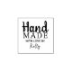 This minimal "Handmade" rubber stamp features lettering with a custom script name.