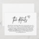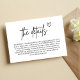The "Minimal Handwritten Script Wedding Enclosure Card" combines simplicity with a personal touch. Featuring elegant handwritten-style script, this card beautifully conveys essential wedding details like directions, accommodations, or special notes. Its minimal design allows the graceful lettering to take centre stage, creating a warm and intimate feel. Perfect for couples seeking a modern yet heartfelt touch, this enclosure card adds a unique charm to your wedding stationery, ensuring your guests feel welcomed and informed.