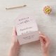 Minimal modern pale pink wedding all in one invitation. "Happily Ever After" is written on the inside top flap of the card in a mixture of simple typography and a stylish script with swashes. A tear away RSVP postcard provides a convenient and eco-friendly envelope-free response from your guests.