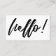 Minimal Hello in Handwriting Script Black on White Business Card