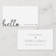A minimal business card design with a stylish handwritten script large typograhy quote "hello" paired with your own name and a simple black heart. Designed in a modern mininalist style in clean simple black and white. The perfect personalised gift or accessory for any time of year!