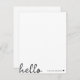A minimal note card design with a stylish handwritten script large typograhy quote "hello" paired with your own name and a simple black heart. Designed in a modern mininalist style in clean simple black and white. The perfect personalised gift or accessory for any time of year!