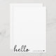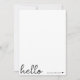 A minimal note cards design with a stylish handwritten script large typograhy quote "hello" paired with your own name and a simple black heart. Designed in a modern mininalist style in clean simple black and white. The perfect personalised gift or accessory for any time of year!