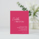 Modern Viva Magenta pink budget all in one wedding invitation featuring a simple and minimal design with the bride's name in an elegant script and the groom's name in a contemporary sans serif font. Below in the lower right corner are your event details in a minimalist layout. The back has your additional details and QR Code, so you can skip the enclosure card and RSVP card.