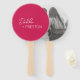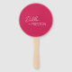 Modern Viva Magenta pink wedding hand fan featuring a simple and minimal design with the bride's name in an elegant script and the groom's name in a contemporary sans serif font. The back has your favourite photo. A minimalist design that goes well with any style of wedding.