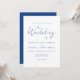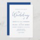 This simple, modern wedding invitation features indigo blue text on a white background, with the words "the Wedding of" in stylish handwriting calligraphy. Add the names of the bride and groom and wedding details in blue sans serif font. The reverse side is solid blue.