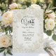 Set the tone for your formal spring nuptials with this elegant botanical design. A sophisticated, monochromatic announcement for the classic romantic couple.This design features a sophisticated visual illusion of a 3D bas-relief sculpture. The artwork depicts intricate rosebuds, blooming flowers, and detailed leaves in a monochromatic cream and soft ivory palette (simulated off-white hex codes), creating the appearance of raised, sculpted paper. The text is presented in a charcoal grey formal serif font, paired with a modern calligraphy script header for a timeless look.This is a flat printed image with a printed texture effect, not actual raised material or embossed paper.