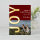 Spread JOY with this minimal gold foil photo christmas holiday card. Design features a festive red background that can be changed to any colour, real gold foil lettering (the word JOY), a season greetting and your name/s.