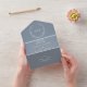 This minimal leaf dusty blue wedding all in one invitation is perfect for an elegant wedding. The design features a simple greenery silhouette in light slate blue with classic minimalist style. Hand write your guest addresses on the back of the folded invitation, or purchase the coordinating guest address label stickers (sold separately).