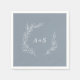 These minimal leaf blue and white monogram wedding napkins are perfect for an elegant wedding. The design features a simple greenery silhouette in white on a dusty blue background with classic minimalist style. Personalise the napkins with the initials of the bride and groom.