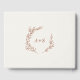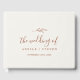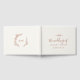 This minimal leaf boho cream monogram back wedding guest book is perfect for a boho wedding. The design features a simple greenery leaf silhouette in earthy burnt orange on a cream background with minimalist desert bohemian style. Personalise the front cover with the names of the couple and the wedding date.
