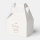 This minimal leaf boho cream thank you wedding favour box is perfect for a boho wedding reception. The design features a simple greenery leaf silhouette in earthy burnt orange on a cream background with minimalist desert bohemian style. Personalise the favour boxes with your names, the event (if applicable), and the date. These favour boxes can be used for a wedding reception, bridal shower, or any event!