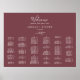 This minimal leaf burgundy alphabetical seating chart poster is perfect for a boho wedding. This horizontal sign can be used to organise your guests alphabetically or by table number by changing the headings. The bohemian design features a simple greenery silhouette in a dark red wine colour with classic minimalist boho style. This wedding poster includes enough room for up to about 100 guests. Make room for more (or less) guests by clicking the "customise" button and decrease or increase the size of the font. In addition to the placement of each guest, personalise this sign with the names of the bride and groom and the wedding date.