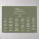 This minimal leaf dark green alphabetical seating chart poster is perfect for a boho wedding. This horizontal sign can be used to organize your guests alphabetically or by table number by changing the headings. The design features a simple greenery leaf silhouette in olive green with minimalist mountain bohemian style. This wedding poster includes enough room for up to about 100 guests. Make room for more (or less) guests by clicking the "customize" button and decrease or increase the size of the font. In addition to the placement of each guest, personalize this sign with the names of the bride and groom and the wedding date.