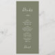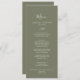 This minimal leaf dark green dinner and drinks menu card is perfect for a boho wedding. The design features a simple greenery leaf silhouette in olive green with minimalist mountain bohemian style. This menu features the dinner menu on one side and the drinks menu on the back. It can be used for a wedding reception, rehearsal dinner, or any event.