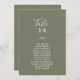These minimal leaf dark green hanging seating chart cards are perfect for a boho wedding. The design features a simple greenery leaf silhouette in olive green with minimalist mountain bohemian style. The card prints on the front and back (double-sided).