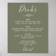 Minimal Leaf | Dark Green Wedding Drinks Menu Poster