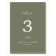 Minimal Leaf | Dark Green Wedding Table Number