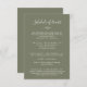 This minimal leaf dark green weekend schedule of events enclosure card is perfect for a boho wedding. The design features a simple greenery leaf silhouette in olive green with minimalist mountain bohemian style.