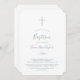 This minimal leaf dusty blue baptism invitation is perfect for an elegant baby baptism. The design features a simple greenery silhouette in light slate blue with classic minimalist style.