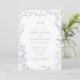 The invitation features an intricate leafy line art motif framing your special invitation details, where you feature the couples' initials in a beautifully crafted monogram. A hand lettered calligraphy font adds an elegant touch that will bring the whole look together, in a timeless colour combo of dusty blue and bright white.