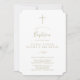 This minimal leaf gold 2 or 3 person baptism invitation is perfect for an elegant baby baptism. The design features a simple greenery silhouette in faux gold foil with classic minimalist style.