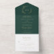 Minimal Leaf | Gold and Emerald Wedding All In One Invitation