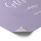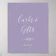 This minimal leaf lavender cards and gifts poster sign is perfect for a boho wedding or bridal shower. The design features a simple greenery leaf silhouette in pastel lilac purple with minimalist bohemian garden style. The line of text at the bottom of the sign can be personalised with the date, the names of the bride and groom, or a short message like "Thank you". This sign can be used for a wedding or any event or party.