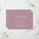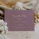 This minimal leaf mauve horizontal save the date card is perfect for a boho wedding. The design features a simple greenery leaf silhouette in a romantic purple pink colour with minimalist bohemian garden style.
