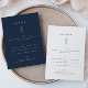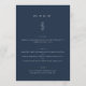 Minimal Leaf Navy Blue Wedding Dinner Flat Menu