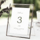 This minimal leaf olive green wedding table number is perfect for a boho wedding. The design features a simple greenery leaf silhouette in olive green with minimalist mountain bohemian style. The card prints on the front and back (double-sided). Items are printed exactly as they appear on your screen when you add to cart, so personalise and add each table number that you need to your cart individually.