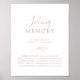 This minimal leaf pink in loving memory memorial sign is perfect for an elegant wedding. The design features a simple greenery silhouette in light blush pink with classic minimalist style.