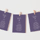 These minimal leaf plum hanging seating chart cards are perfect for a boho wedding. The jewel tone design features a simple greenery leaf silhouette in a dark blue violet purple with minimalist boho style. The card prints on the front and back (double-sided).