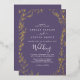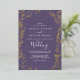This minimal leaf plum purple and gold foil wedding invitation is perfect for a boho wedding. The jewel tone design features a simple greenery leaf silhouette in a dark blue violet purple with minimalist boho style with luxurious pressed foil accents.