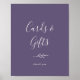 This minimal leaf plum purple cards and gifts poster sign is perfect for a boho wedding or bridal shower. The jewel tone design features a simple greenery leaf silhouette in a dark blue violet purple with minimalist boho style. The line of text at the bottom of the sign can be personalised with the date, the names of the bride and groom, or a short message like "Thank you". This sign can be used for a wedding or any event or party.