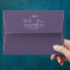 This minimal leaf plum purple wedding invitation envelope is perfect for a boho wedding. The jewel tone design features a simple greenery leaf silhouette in a dark blue violet purple with minimalist boho style. Personalise the envelope flap with your return address. These envelopes can also be used for a bridal shower, rehearsal dinner, or any special event.