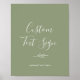 This minimal leaf sage green custom text sign is perfect for a boho wedding. The design features a simple greenery leaf silhouette in a dusty green color with minimalist mountain boho style. Customize the wording to say anything you'd like! This sign can be used for cards and gifts, guest book, wedding hashtag, favors, dessert bar -- anything! It can be used for a wedding, bridal shower, rehearsal dinner or any event. The line of text at the bottom of the sign can be personalized with the date, the names of the bride and groom, or a short message like "Thank you". If you would like multiple coordinating signs, customize and add to your cart one at a time.