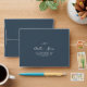These minimal leaf slate blue self-addressed RSVP envelopes are perfect for an elegant wedding. The design features a simple greenery silhouette in a dark grey blue with classic minimalist style. Personalise with the name of the bride and groom and RSVP address.