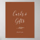 This minimal leaf terracotta cards and gifts poster sign is perfect for a boho wedding or bridal shower. The design features a simple greenery leaf silhouette in earthy burnt orange with minimalist desert bohemian style. The line of text at the bottom of the sign can be personalized with the date, the names of the bride and groom, or a short message like "Thank you". This sign can be used for a wedding or any event or party.