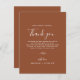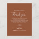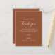 This minimal leaf terracotta thank you reception card is perfect for a boho wedding. The design features a simple greenery leaf silhouette in earthy burnt orange with minimalist desert bohemian style. Place these cards at the table setting for each of your guests at your wedding reception. Personalise the card with your names and a special thank you message.