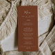 This minimal leaf terracotta wedding dinner menu card is perfect for a boho wedding. The design features a simple greenery leaf silhouette in earthy burnt orange with minimalist desert bohemian style. This menu can be used for a wedding reception, rehearsal dinner, or any event.