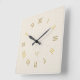 Minimal light cream linen Gold Roman Numerals Square Wall Clock
