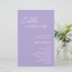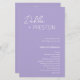 Modern lavender / purple wedding program featuring a simple and minimal design with the bride's name in an elegant script and the groom's name in a contemporary sans serif font. Below in the lower right corner are your event details and order of ceremony in a minimalist layout. The back has your wedding party and thank you message.
