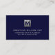 Minimal Luxury Navy Blue Silver Monogram Business Card