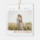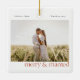 This simple and modern holiday photo ornament features the text merry and married in a bright red colour. Personalise by adding a photo, the couple's name and wedding date! This is a perfect Christmas gift for the newlyweds in your life. For further customisation, send us a message on Zazzle!