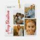 Minimal Merry Christmas Script Family 4 Photos Ceramic Ornament