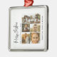 Minimal Merry Christmas Script Family 6 Photos Metal Ornament